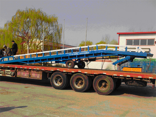 沙特客戶訂做移動(dòng)式登車橋發(fā)貨??蛻暨x訂的帶支腿式移動(dòng)式10T登車橋